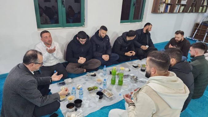 Në fund të iftarit, u bë lutja e sofrës nga imami i xhamisë si dhe më pas u falë namazi i akshamit.
